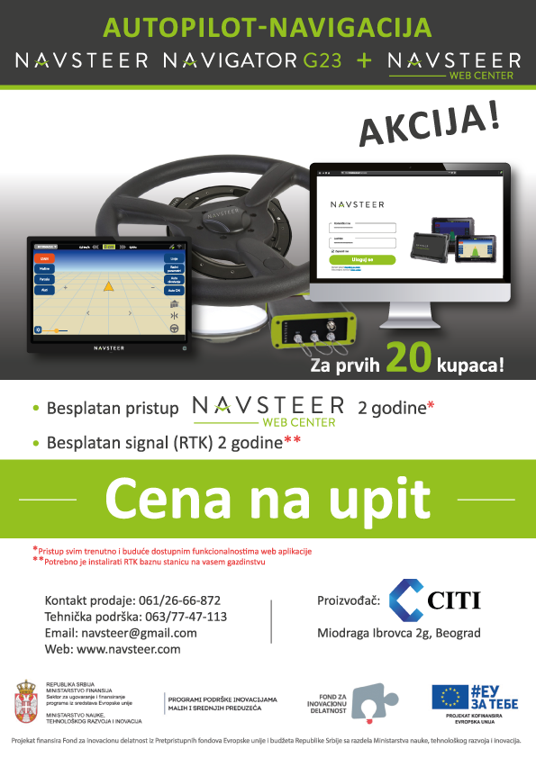 Precizna poljoprivreda i navigatori kao njen temelj dobijaju na značaju sve više. Kako je danas 4G/5G tehnologija sve prisutnija, a pritom se sve više koriste digitalne tehnologije, kompanija Citi je, uz finansijsku podršku Fonda za inovacionu delatnost i tehničku podršku eksternih partnera koji su stručni u oblasti mašinstva i precizne poljoprivrede, razvila prvi srpski auto pilot uređaj za navođenje traktora pod imenom Navsteer.